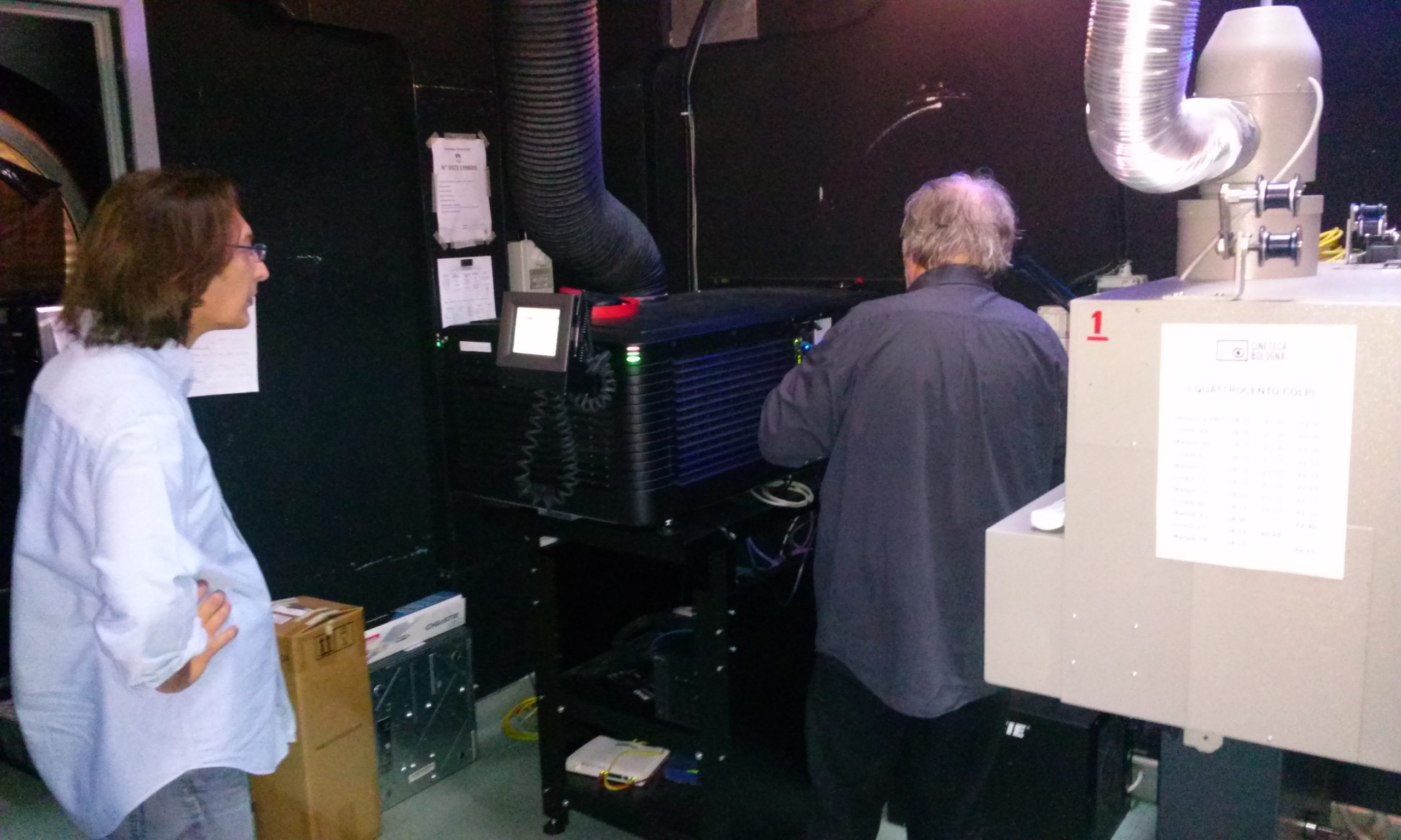 Ieri mattina Silvano e Luigi, ospiti della Cineteca di Bologna, sono andati al cinema Lumière per provare Ati in formato cinematografico ed in 3D.