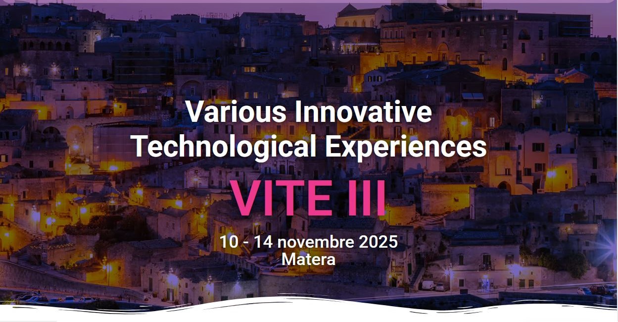 Sono aperte le registrazioni e le sottomissioni dei contributi per la terza edizione del congresso Various Innovative Technological Experiences (VITE III), in programma dal 10 al 14 novembre 2025 a Matera, presso il Museo della Scienza Sparkme Space Academy.