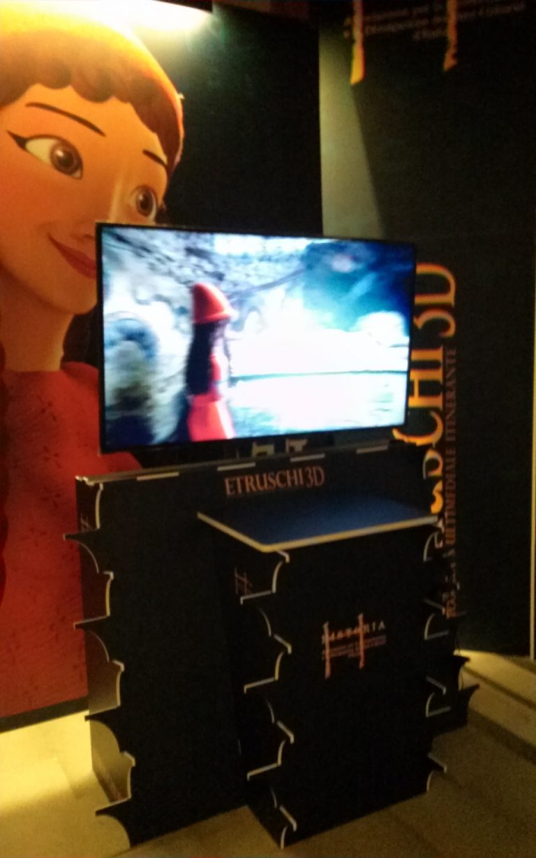 La mostra Etruschi 3D è a Viterbo, dal 24 ottobre 2015 al 4 maggio 2016. Il percorso si dipana tra una serie di grandi monitor, proiezioni a schermo e sistemi olografici che raccontano il mondo etrusco con ricostruzioni virtuali realizzate dalla Fondazione Bruno Kessler e le video installazioni curate da Historia. Pensata come mostra itinerante e partita nel 2010 da Bruxelles, dopo essere passata da Trento e Stoccolma, nella sua edizione Viterbese ospita una sezione dedicata ad Experience Etruria e Ati.