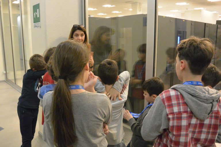 Sono venuti a trovarci i bambini del progetto Space Camp, una bella iniziativa che cerca di avvicinare i più piccoli alla ricerca scientifica e alla tecnologia. Al gruppo di attentissimi partecipanti è stata presentata e spiegata la sala macchine, suscitando domande puntuali ed interessanti, prima di accedere al teatro virtuale. Qui hanno visto e commentato la simulazione dell’eruzione del vulcano dei Campi Flegrei ed il filmato sul Big Bang.Prima di passare alla nostra amata Ati, abbiamo fatto vedere ai bambini anche il Pizza Designer, con grande scompiglio dei piccoli stomaci, improvvisamente memori dell’avvicinarsi dell’ora di cena. La visita si è conclusa con la spiegazione del CG artist su come inserire un personaggio in computer grafica nelle riprese dal vero. Sarà stato un po’ troppo? No, dai, lui in fondo ha iniziato a modellare ad 11 anni.Quindi.. a presto, vi aspettiamo tra pochissimo come tirocinanti o stagisti!